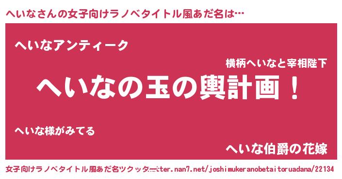 | ヒーロー風カッコイイあだ名 | 『究極戦士ヘイナ』『ウルトラへいなマン』 |