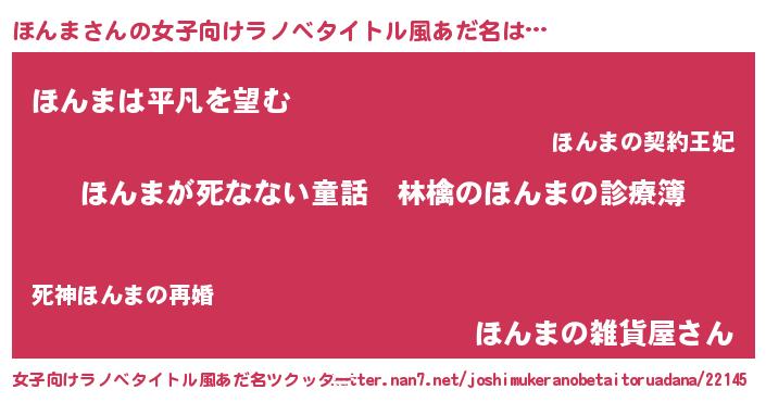 | 男性向けラノベタイトル風あだ名 | 『魔弾の王とほんま』 |