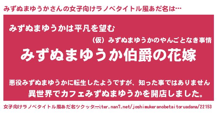 | 肩書あだ名 | 『みずぬまゆうか国家主席』 |