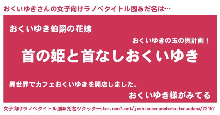 | 男性向けラノベタイトル風あだ名 | 『はたらくおくいゆきさま!』 |