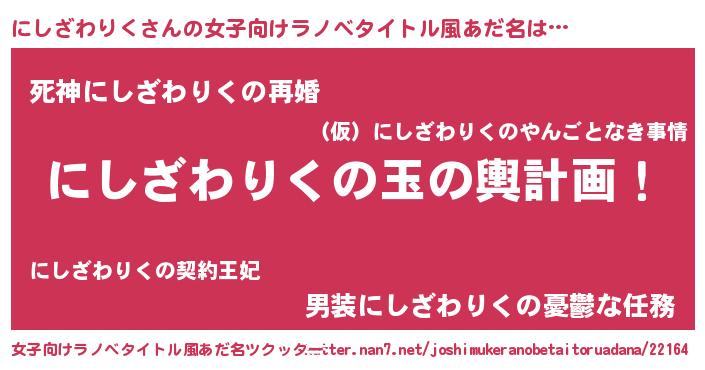 | 胡散臭い通販商品みたいなあだ名 | 『お金では代えられないイリジウム磁石…その名も「にしざわりく」』 |