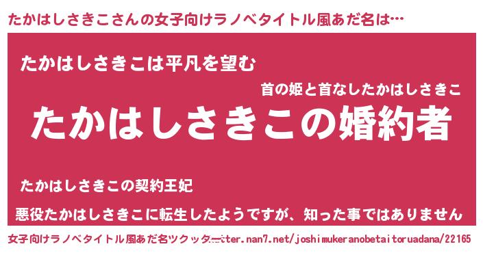 | ファンタジー風あだ名 | 『エターナルタカハシサキコー』 |