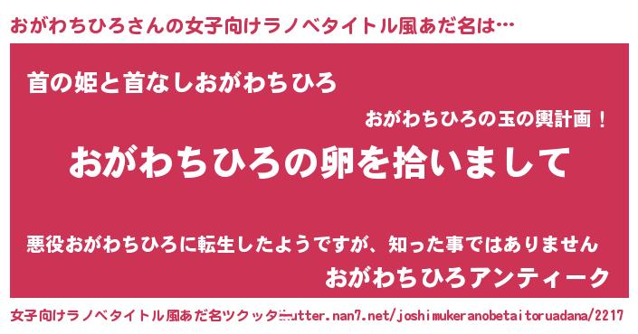 | 男性向けラノベタイトル風あだ名 | 『おがわちひろの嫁は女の子じゃないと思った?』 |