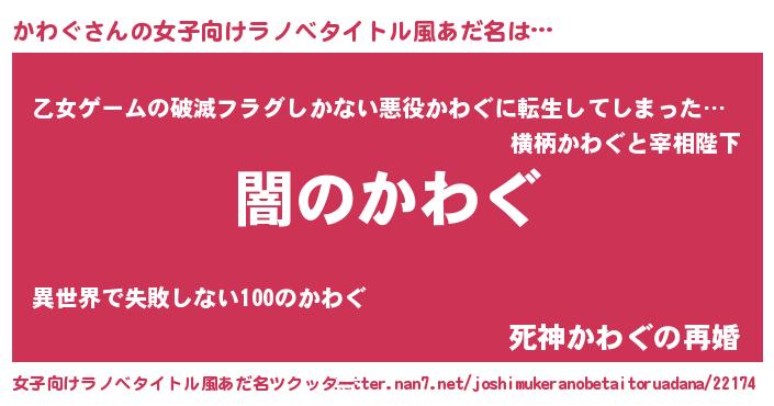 | 胡散臭い通販商品みたいなあだ名 | 『芸能人もオススメする高麗人参…その名も「かわぐ」』 |