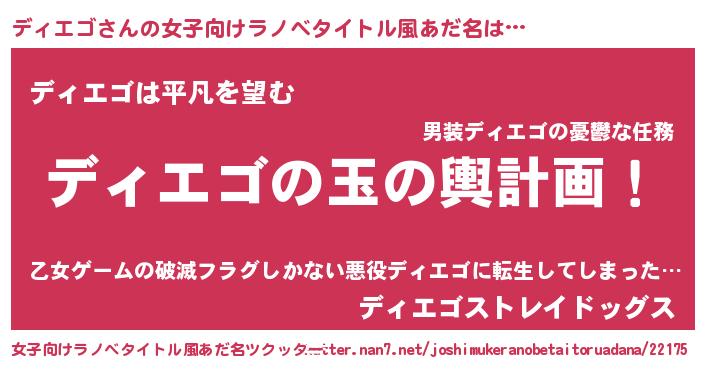 | 男性向けラノベタイトル風あだ名 | 『転生したらディエゴだった件』 |