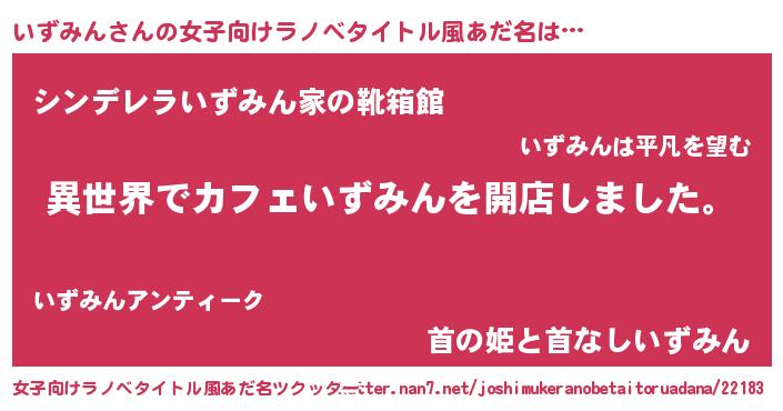 | 男性向けラノベタイトル風あだ名 | 『誰もが恐れるあのいずみんが、ぼくの専属メイドになるようです。』 |