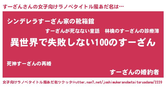 | 男性向けラノベタイトル風あだ名 | 『すーざんという概念が存在しない退屈な世界 』 |