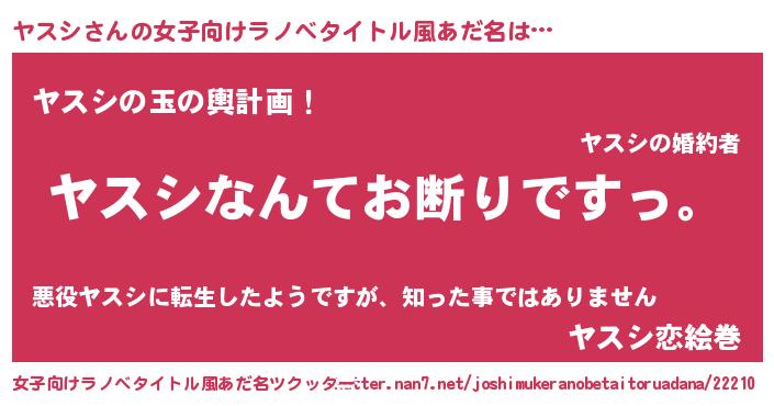 | 男性向けラノベタイトル風あだ名 | 『魔法科高校のヤスシ』 |