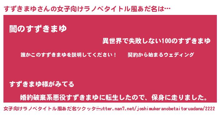| 胡散臭い通販商品みたいなあだ名 | 『億万長者になれる水晶球…その名も「すずきまゆ」』 |
