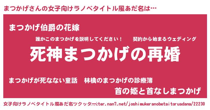 | 男性向けラノベタイトル風あだ名 | 『ノーゲーム・ノーマツカゲ』 |
