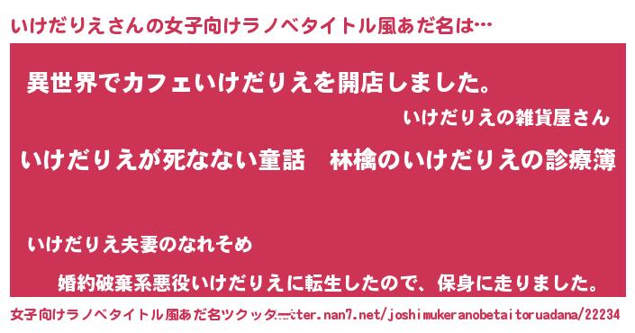 | 意味不明あだ名 | 『住所不定無職いけだりえ(84歳)』 |