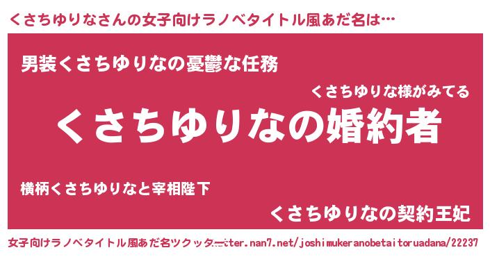 | ヘコむあだ名 | 『酢こんぶ』『くさちゆりな(苦笑)』 |