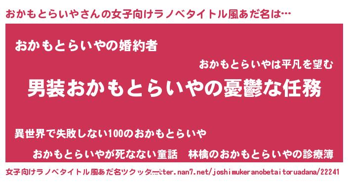 | 男性向けラノベタイトル風あだ名 | 『うちのおかもとらいやが世界を掌握している!』 |