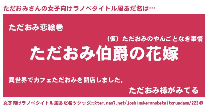 | 胡散臭い通販商品みたいなあだ名 | 『世界が平和になる高級そうな壺…その名も「ただおみ」』 |