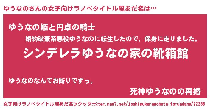 | 男性向けラノベタイトル風あだ名 | 『緋弾のユウナノ』『ユウナノスレイヤー』 |