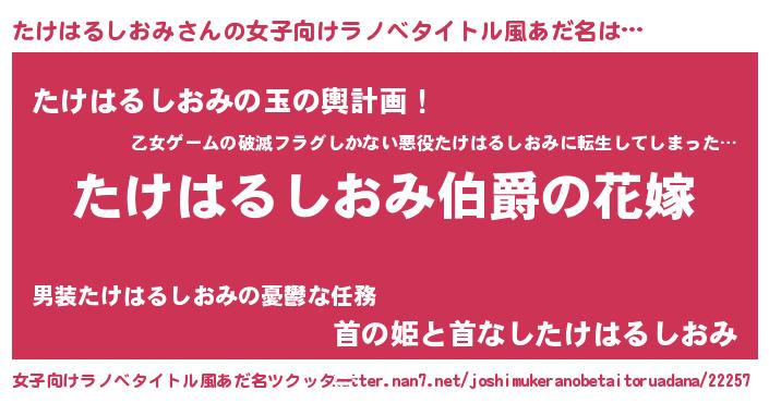 | 男性向けラノベタイトル風あだ名 | 『やはりたけはるしおみの青春ラブコメはまちがっている 』 |