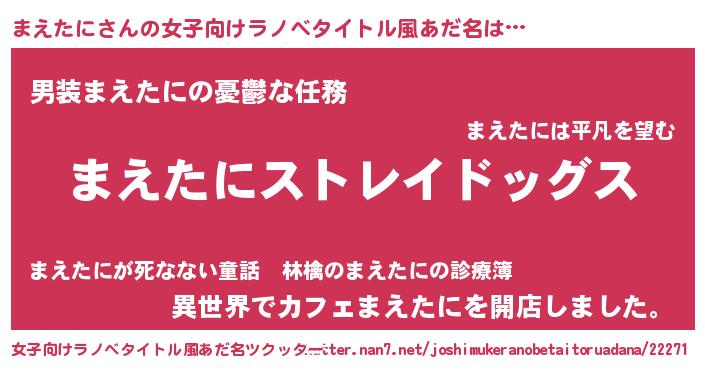 | 男性向けラノベタイトル風あだ名 | 『Re:まえたにから始める異世界生活』 |