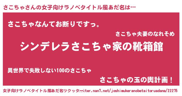 | 意味不明あだ名 | 『自称さこちゃ』『エリンギ科さこちゃ属』 |