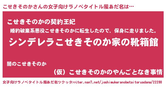| 意味不明あだ名 | 『永久保存こせきそのか』 |