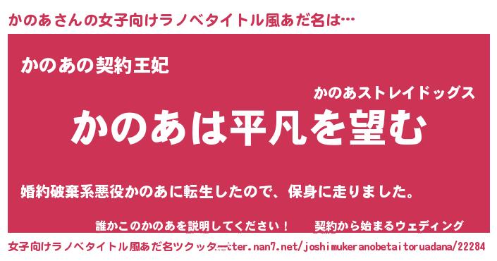 | ヘコむあだ名 | 『かのっ子』『かのあ(震え声)』 |