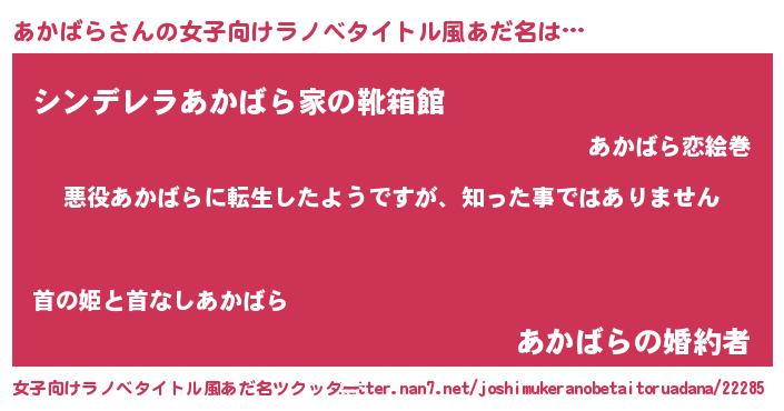 | 男性向けラノベタイトル風あだ名 | 『この素晴らしい世界にあかばらを!』 |