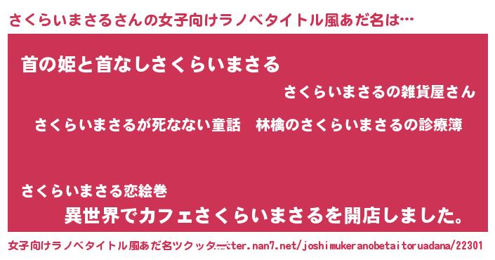 | 意味不明あだ名 | 『住所不定無職さくらいまさる(47歳)』 |