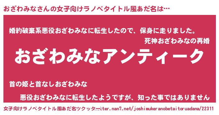 | 胡散臭い通販商品みたいなあだ名 | 『ガンによく効く高麗人参…その名も「おざわみな」』 |