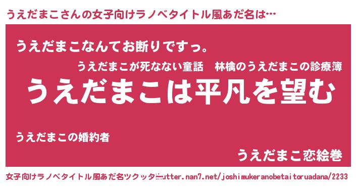 | 胡散臭い通販商品みたいなあだ名 | 『信頼と実績のペンダント…その名も「うえだまこ」』 |