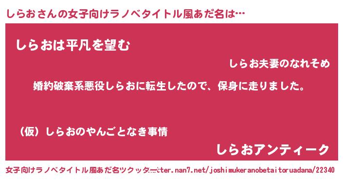 | 男性向けラノベタイトル風あだ名 | 『シラオスレイヤー』『しらおの憂鬱』 |