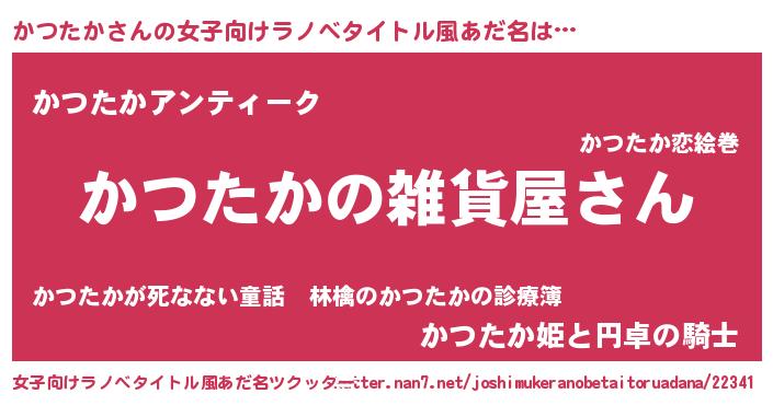 | 男性向けラノベタイトル風あだ名 | 『やはりかつたかの青春ラブコメはまちがっている 』 |