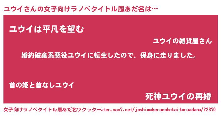 | 男性向けラノベタイトル風あだ名 | 『転生したらユウイだった件』 |