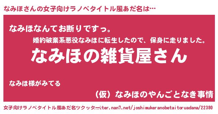 | 男性向けラノベタイトル風あだ名 | 『やはりなみほの青春ラブコメはまちがっている 』 |