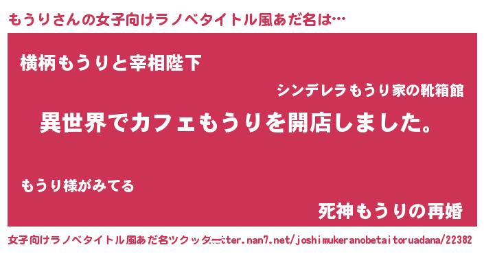 | 男性向けラノベタイトル風あだ名 | 『誰もが恐れるあのもうりが、ぼくの専属メイドになるようです。』 |