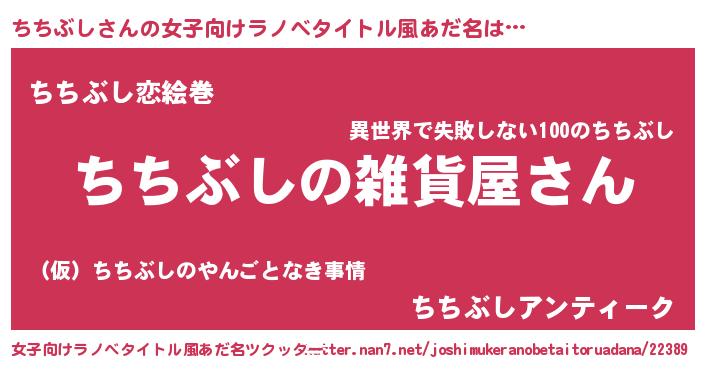 | 男性向けラノベタイトル風あだ名 | 『やはりちちぶしの青春ラブコメはまちがっている 』 |