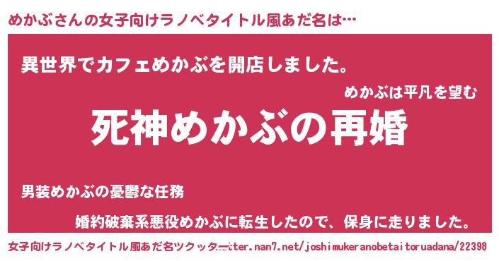| 男性向けラノベタイトル風あだ名 | 『ノーゲーム・ノーメカブ』 |