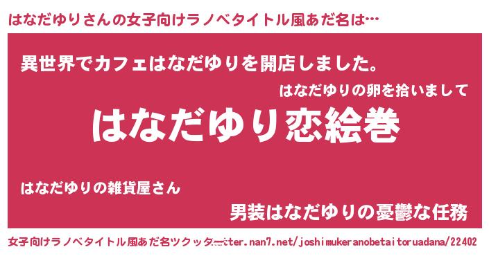 | 男性向けラノベタイトル風あだ名 | 『おまえをオタクにしてやるから、俺をはなだゆりにしてくれ! 』 |