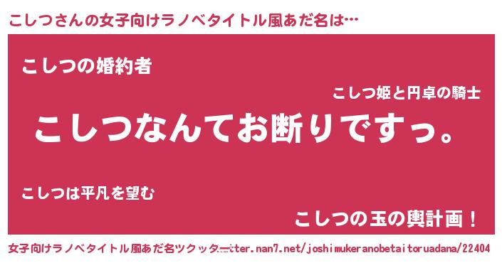 | 胡散臭い通販商品みたいなあだ名 | 『ガンによく効く高麗人参…その名も「こしつ」』 |