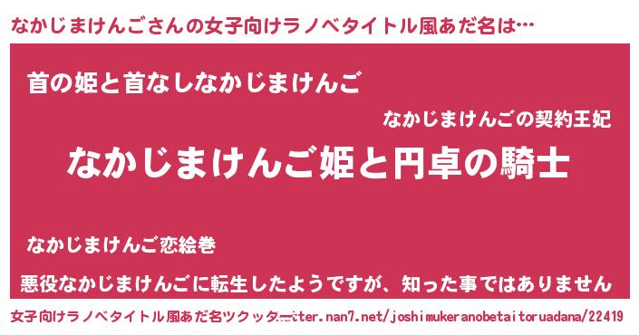 | 男性向けラノベタイトル風あだ名 | 『なかじまけんごの憂鬱』 |