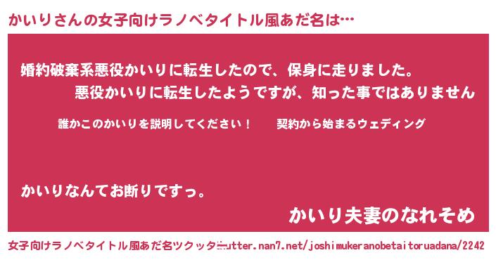 | 胡散臭い通販商品みたいなあだ名 | 『億万長者になれるブレスレット…その名も「かいり」』 |
