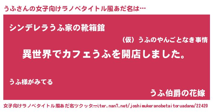 | 男性向けラノベタイトル風あだ名 | 『誰もが恐れるあのうふが、ぼくの専属メイドになるようです。』 |