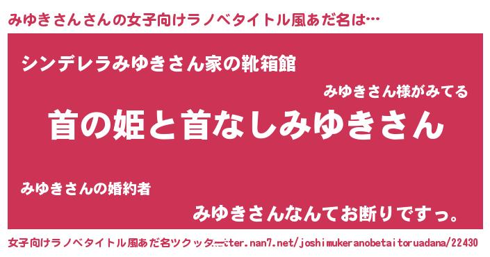 | 男性向けラノベタイトル風あだ名 | 『はたらくみゆきさんさま!』 |