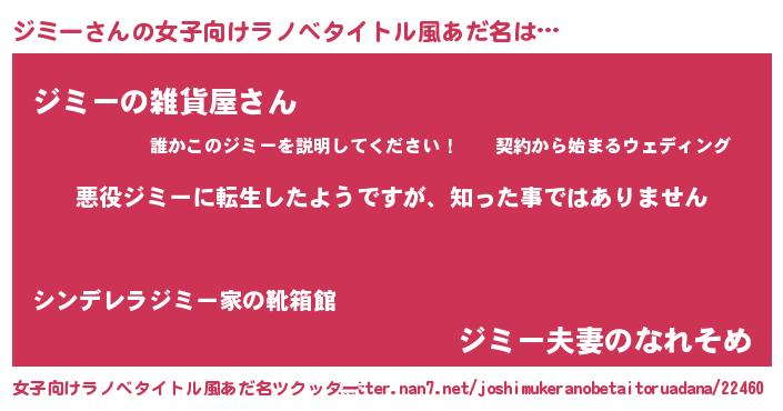 | 胡散臭い通販商品みたいなあだ名 | 『あなたにだけ特別に提供する100年もののヴィンテージワイン…その名も「ジミー」』 |