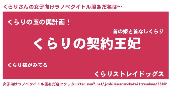 | 男性向けラノベタイトル風あだ名 | 『くらりという概念が存在しない退屈な世界 』 |