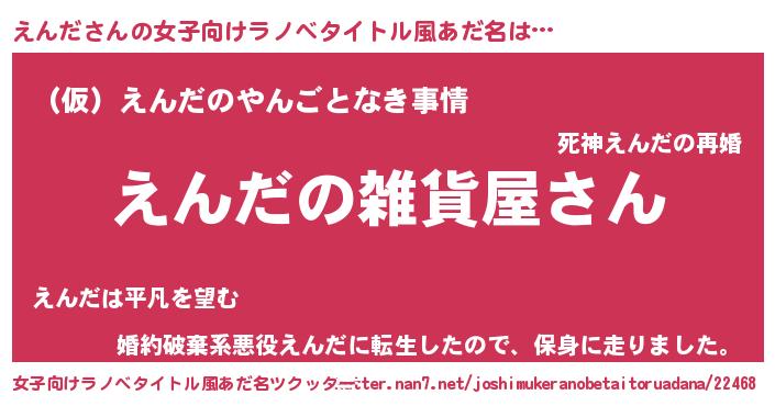 | 男性向けラノベタイトル風あだ名 | 『やはりえんだの青春ラブコメはまちがっている 』 |