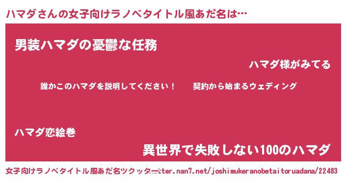 | 男性向けラノベタイトル風あだ名 | 『ハマダアートオンライン』 |