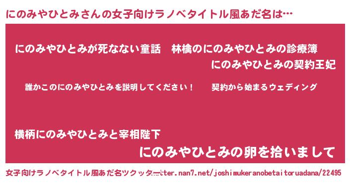 | 胡散臭い通販商品みたいなあだ名 | 『億万長者になれるブレスレット…その名も「にのみやひとみ」』 |
