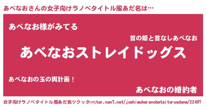 | 男性向けラノベタイトル風あだ名 | 『Re:あべなおから始める異世界生活』 |