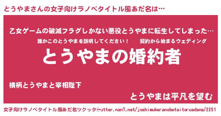 | 胡散臭い通販商品みたいなあだ名 | 『運命の人と巡り会える高級そうな皿…その名も「とうやま」』 |
