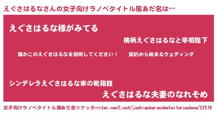 | 肩書あだ名 | 『えぐさはるな社長』『えぐさはるな教授』 |
