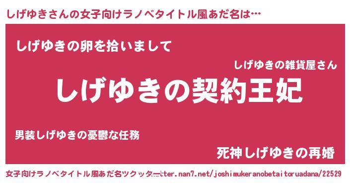 | 男性向けラノベタイトル風あだ名 | 『しげゆきという概念が存在しない退屈な世界 』 |